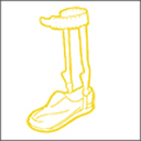 • Funktion: Kraftig skinne med ankelled og hælbøjle, der placeres på den mediale eller begge sider af crus, der styrer foden både når hælen sættes i og i standfasen.